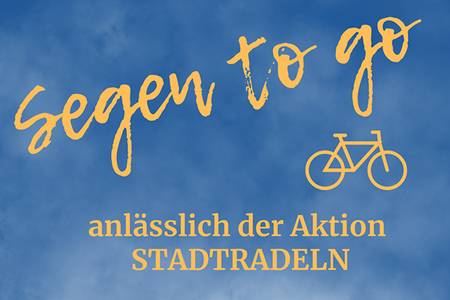 Im Rahmen des Freiburger Stadtradelns laden wir zu "Segen to go" ein: Sonntag, 29. und Montag, 30. Juni, jeweils in der Zeit zwischen 11 Uhr bis 15 Uhr. Die ökumenische Aktion findet am Aufgang zur Wiwilibrücke auf der Seite des Stühlinger Kirchplatzes statt. Wer Lust auf einen Einzel-, Paar-, Familien- oder Fahrradsegen hat, darf gerne in der genannten Zeit am Stand vorbeischauen.