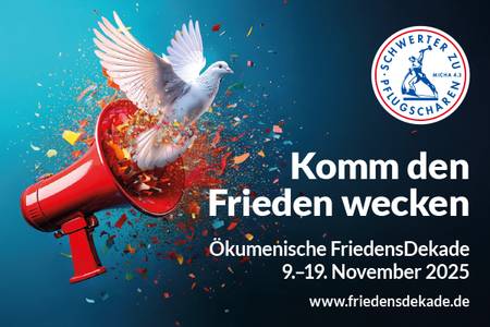 Seit 45 Jahren engagiert sich die Ökumenische FriedensDekade für Gerechtigkeit, Frieden und die Bewahrung der Schöpfung. Auch im Jahr 2025 will die FriedensDekade unter dem Motto »Komm den Frieden wecken« einen Beitrag zur Vertiefung des christlichen Friedenszeugnisses leisten und zur friedenspolitischen Willensbildung in Kirchen, Gemeinden und Gesellschaft beitragen.