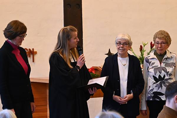 Am vergangenen Sonntag (7.12.) wurde die evangelische Zachäuskirche entwidmet. Ein letztes Mal füllte sich der Kirchraum mit zahlreichen Gemeindegliedern. Für sie ist dieser Abschiedstag ein schmerzlicher Einschnitt, verbinden viele doch mit „ihrer Kirche“ schöne Erinnerungen an Gemeinschaft: schöne Feste, die eigene Trauung und die Taufe des eigenen Kindes. Pfarrerin Kristina Lallathin verabschiedete die beiden Ortsältesten, Annemarie Scheil und Jane Eilers, sowie die Leiterin des Singkreises „Silberstimmen“, Dörte Knall. Sie bedankte sich für jahrzehntelanges ehrenamtliches Engagement.